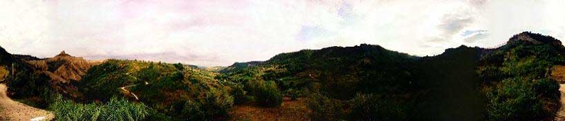 360° Panorama von St. Anselmo. Die absolut ruhige Hügellage direkt unterhalb von Civita ermöglicht eine einzigartige Aussicht auf das Tal mit seinen Calanchi.